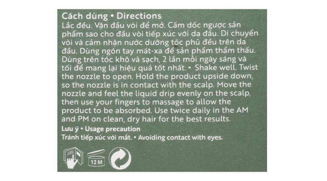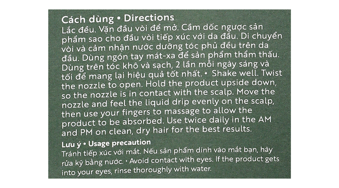 - Dùng trên tóc khô và sạch, 2 lần mỗi ngày sáng và tối để mang lại hiệu quả tốt nhất.