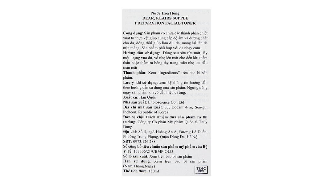 - Tocopheryl Acetate: Chất chống oxy hóa và dưỡng ẩm cho da.