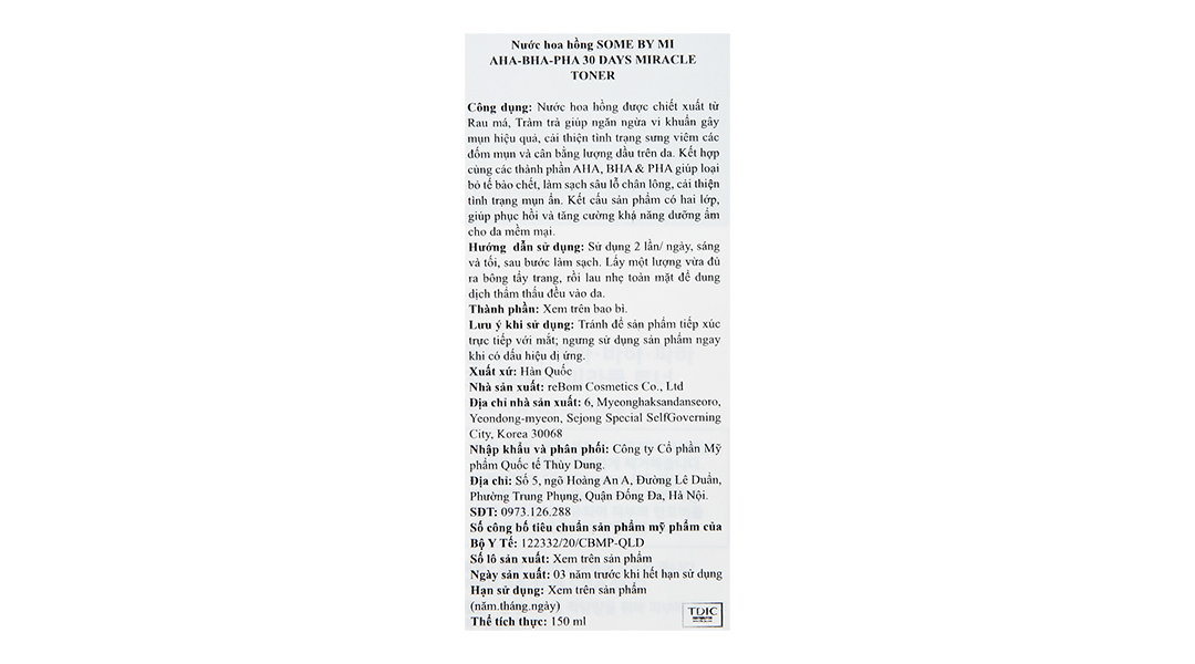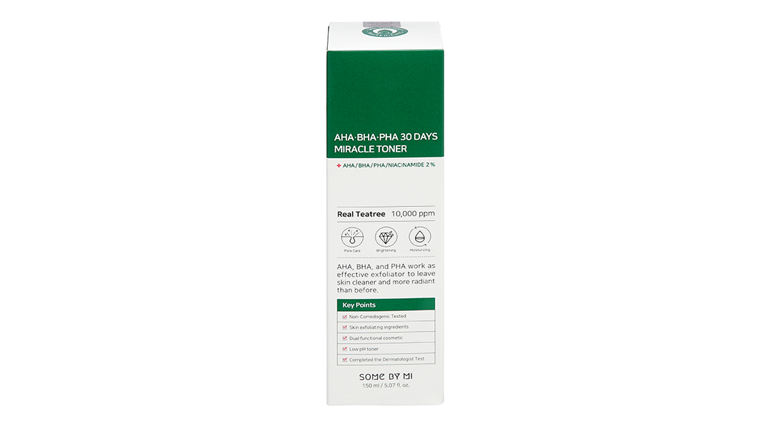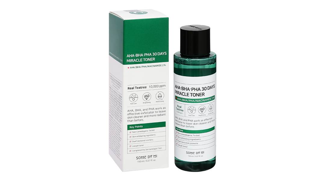 - Nước Hoa Hồng SOME BY MI Cho Da Mụn Miracle Toner AHA- BHA-PHA 30 Days 150ml đến từ SOME BY MI là dòng Toner có chứa phức hợp các loại axit cùng chiết xuất Tràm Trà, giúp làm sạch sâu da, hỗ trợ kháng khuẩn, kháng viêm, ngăn ngừa và làm giảm mụn, đồng thời góp phần thu nhỏ lỗ chân lông, mang lại cho bạn làn da sạch thoáng và mịn màng không tì vết.