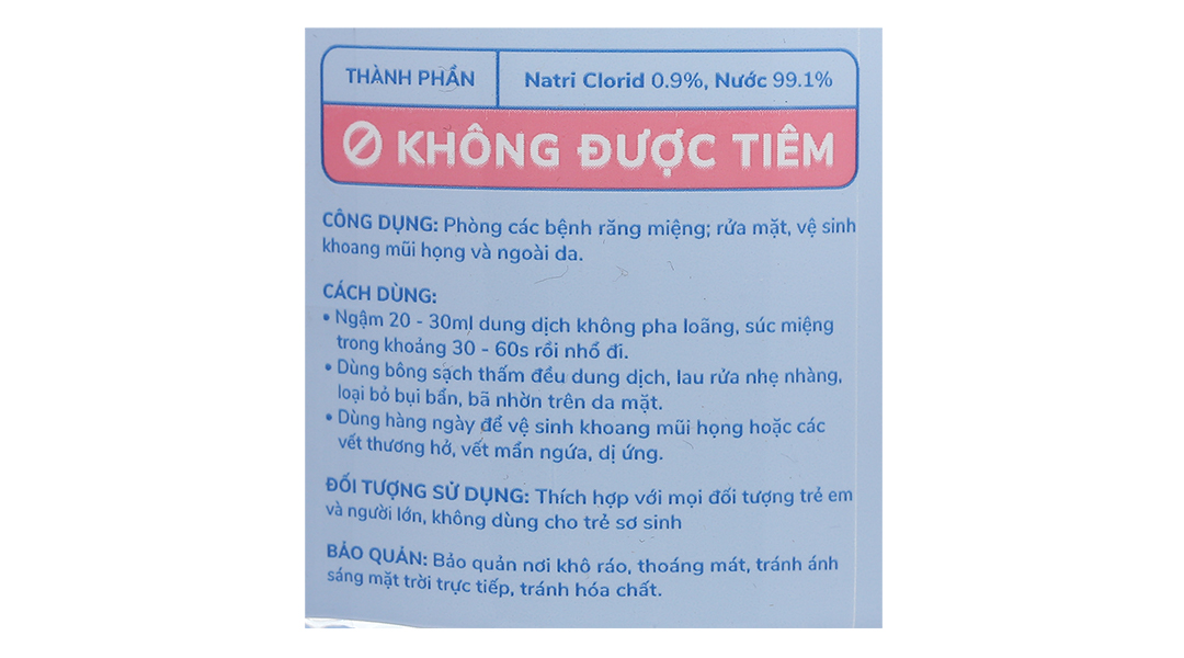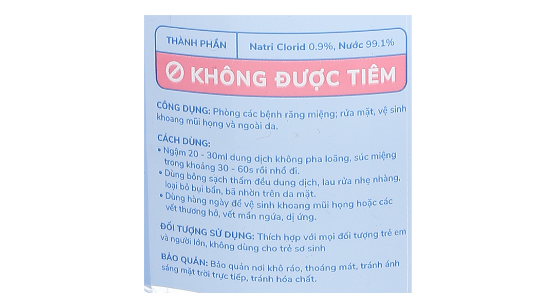 Thành phầnNatri Clorid 0,9%, Nước 99,1%