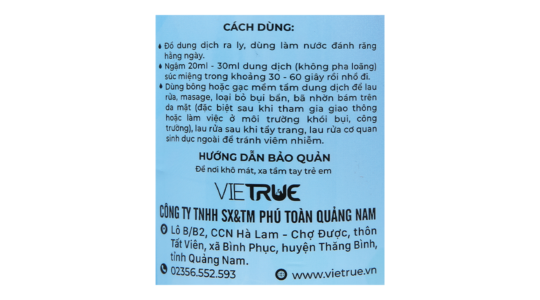 Rửa mặt, mắt, mũi, tai và các vết mẩn ngứa dị ứng. Đặc biệt sau khi tham gia giao thông và làm việc ở môi trường khói, bụi, hóa chất.