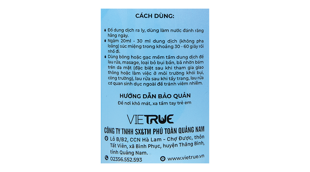 Nước muối Vietrue sát khuẩn, súc miệng chai 500ml