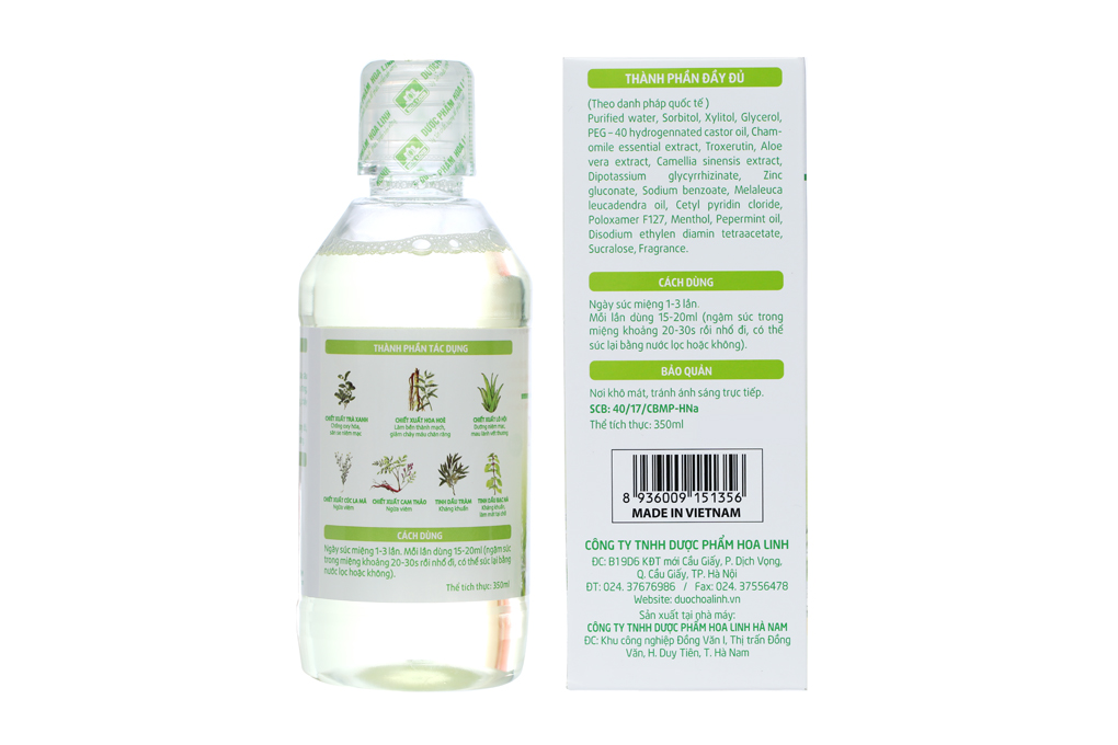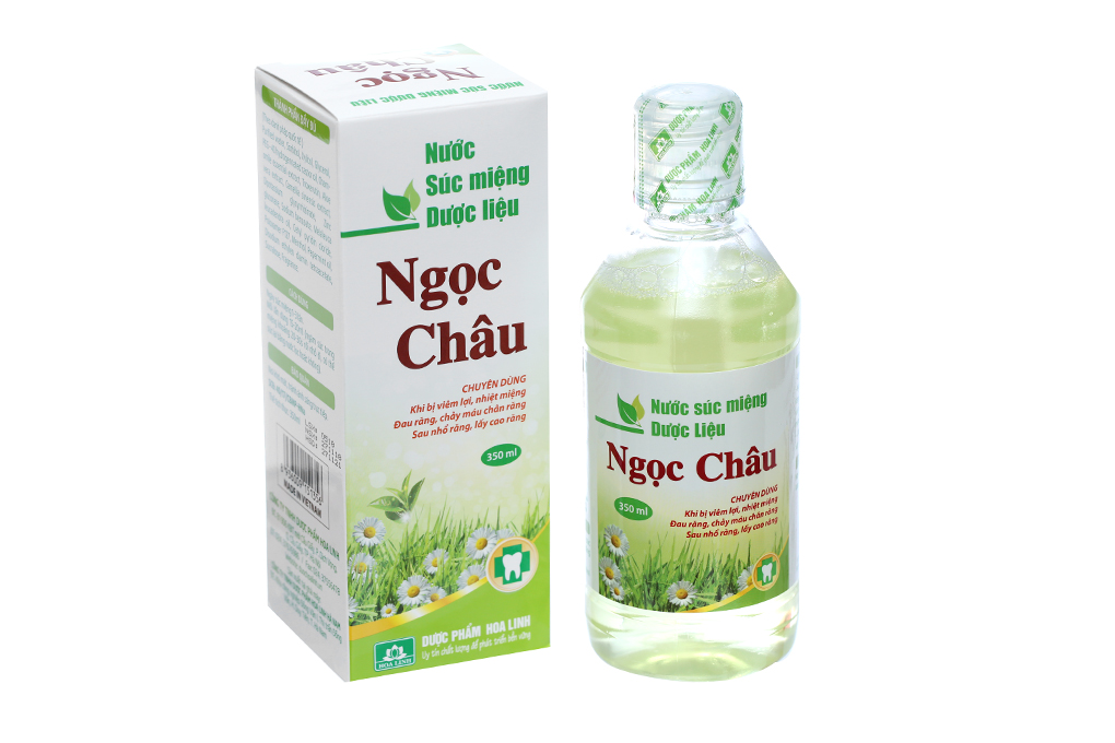 Nước súc miệng dược liệu Ngọc Châu đến từ hãng nước súc miệng, xịt thơm miệng Hoa Linh, được chiết xuất từ các loại dược liệu tự nhiên như cúc La Mã, Lô hội, trà xanh, hoa hòe… Sản phẩm này có khả năng làm sạch và bảo vệ răng miệng, kháng thuốc và ngăn ngừa vi khuẩn gây cảm giác khó chịu.