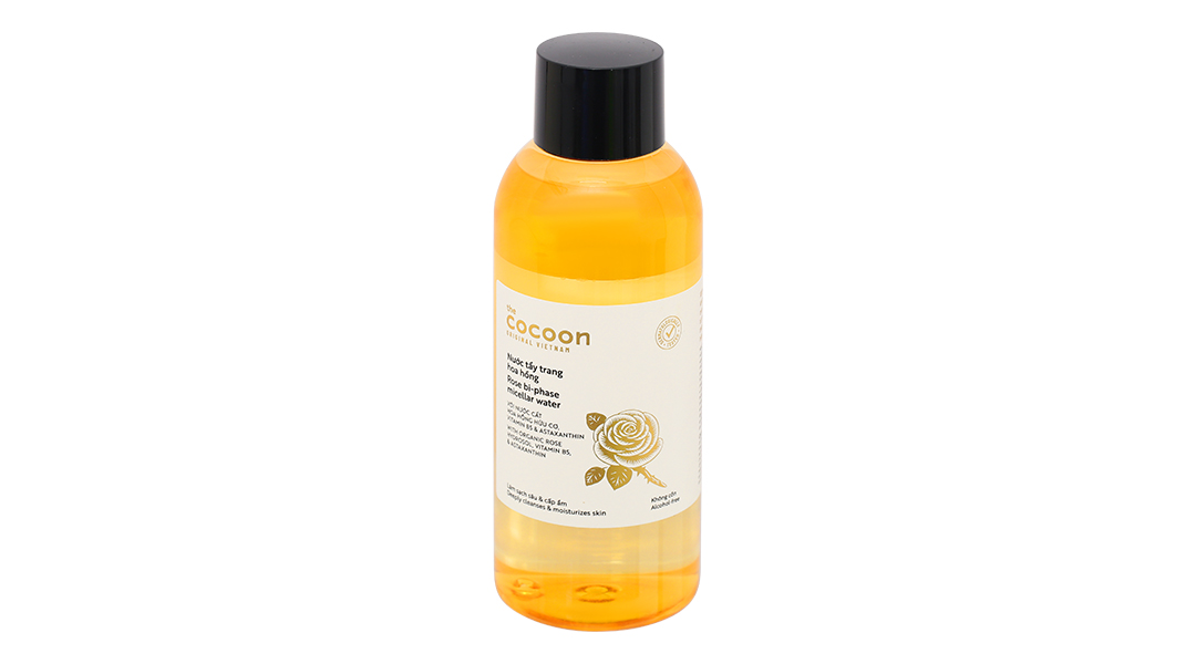 Cùng với đó là nước cất hoa hồng hữu cơ tinh khiết kết hợp công nghệ micellar, nước tẩy trang hoa hồng Cocoon giúp làm sạch sâu lớp trang điểm, bụi bẩn, cấp ẩm và làm dịu, mang lại làn da sạch và mịn màng.