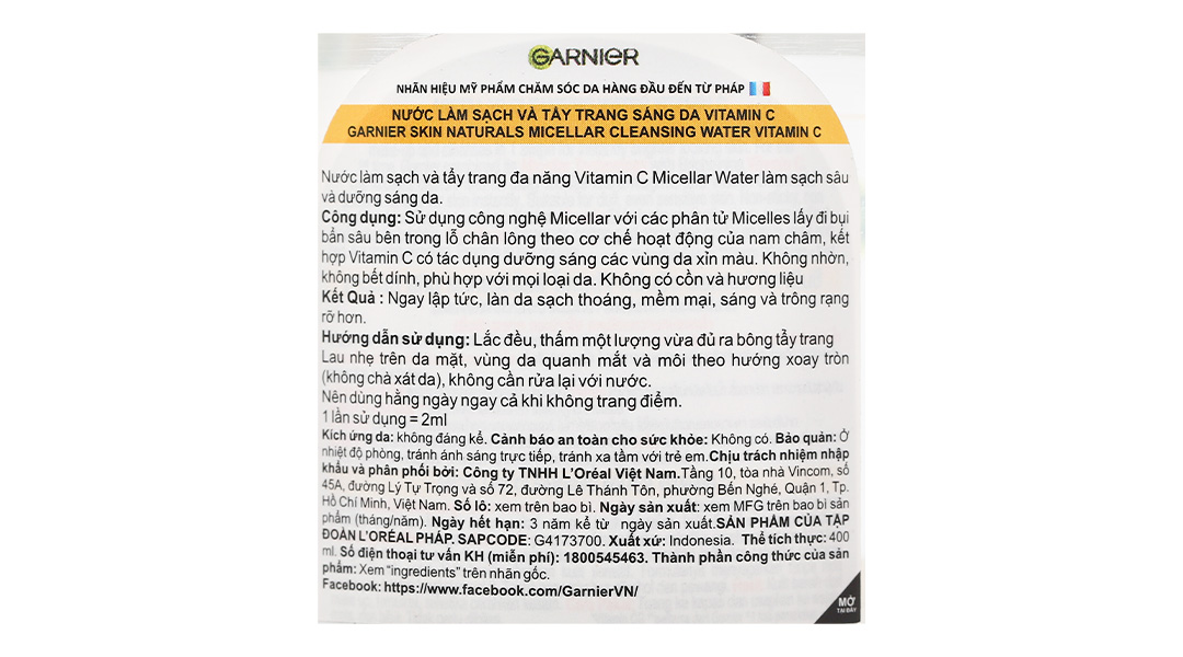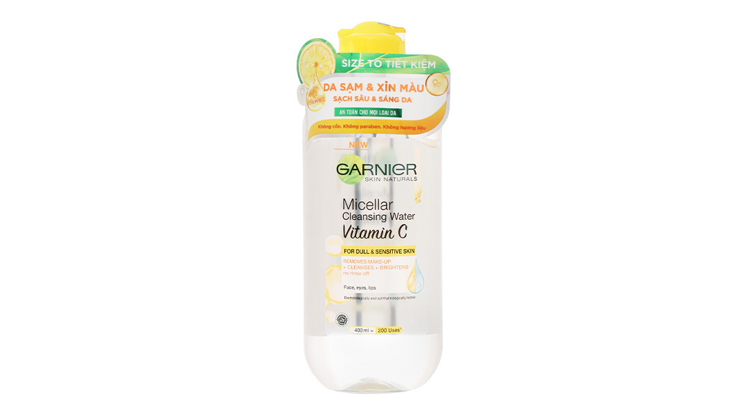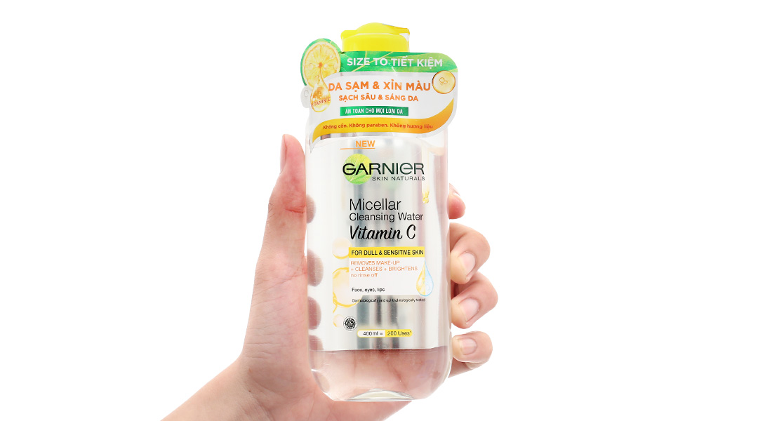 Làm sạch sâu và loại bỏ trang điểm: Nước tẩy trang Garnier Vitamin C làm sạch sâu và loại bỏ các tạp chất, bụi bẩn và mỹ phẩm dư thừa trên da.