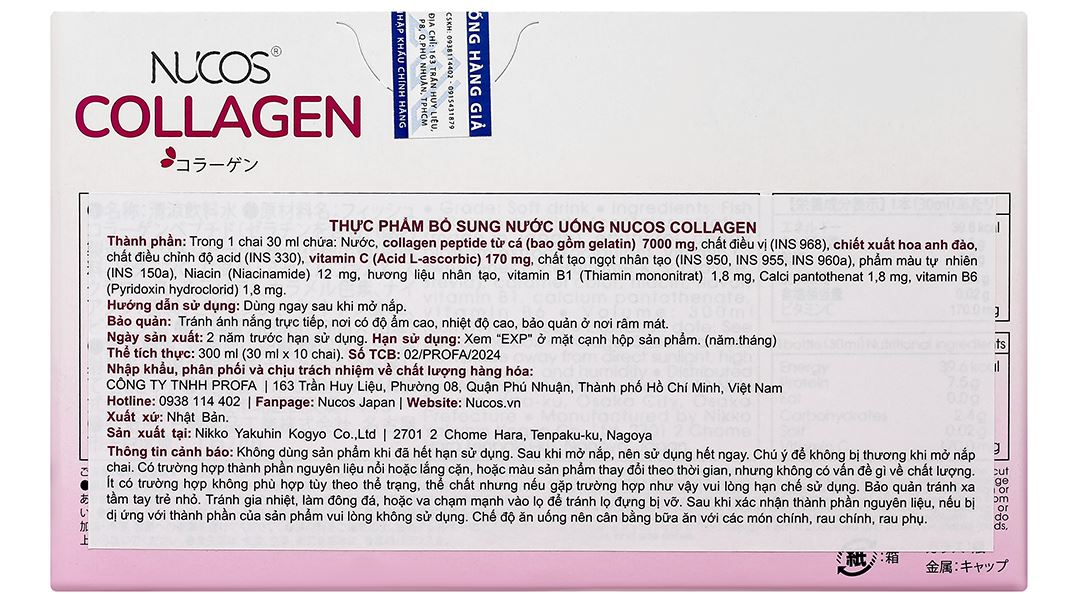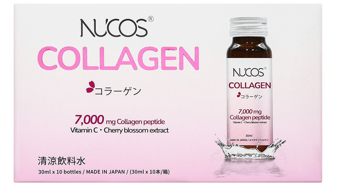 Nước uống Nucos Collagen 7000 bổ sung collagen, giúp da mịn màng hộp 10 chai x 30ml
