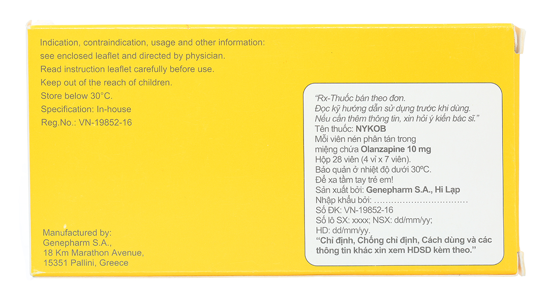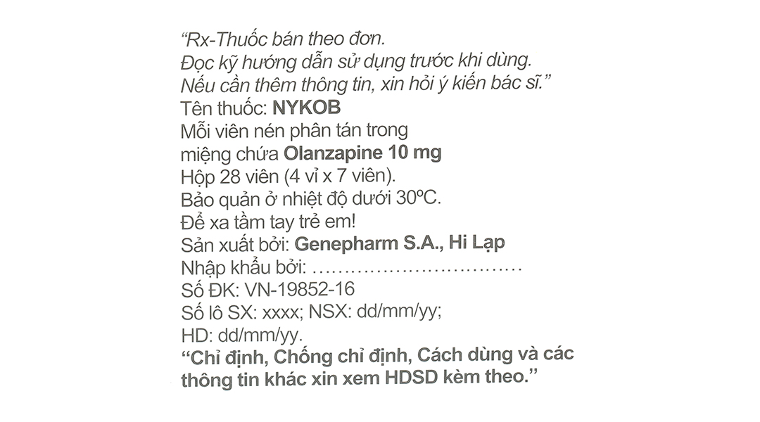 Động kinh: Cần cẩn thận khi dùng olanzapine ở người bệnh có tiền sử động kinh hoặc có những yếu tố làm giảm ngưỡng động kinh. Động kinh hiếm khi xảy ra ở những người bệnh khi điều trị bằng olanzapine. Phần lớn những người bệnh này có tiền sử động kinh hoặc có những yếu tố nguy cơ của bệnh động kinh. Loạn vận động muộn: Trong các nghiên cứu So sánh trong thời gian 1 năm hoặc ít hơn, tỷ lệ tai biến chứng loạn vận động ở bệnh nhân khi điều trị olanzapine thấp hơn Có ý nghĩa thống kê. Tuy nhiên, nguy cơ loạn vận động muộn tăng lên khi dùng thuốc chống loạn thần trong thời gian dài, nên cần giảm liều hoặc ngừng thuốc khi xuất hiện các dấu | hiệu hoặc các triệu chứng này. Những triệu chứng loạn vận động muộn có thể nặng lên theo thời gian hoặc thậm chí xuất hiện sau khi ngừng điều trị. Hoạt động hệ thần kinh trung ương: Vì olanzapine có tác dụng chủ yếu trên hệ thần kinh trung ương, nên phải cẩn thận khi dùng kết hợp với các thuốc khác cũng tác dụng trên hệ thần kinh trung ương và rượu. Vì olanzapine thể hiện tính đối kháng với dopamine trên in vitro, nên olanzapine Có thể đối kháng với tác dụng của các chất chủ vận dopamine gián tiếp và trực tiếp. Hạ huyết áp tư thế đúng: ít khi xảy ra ở những người lớn tuổi trong những thí nghiệm lâm sàng olanzapine. Cũng như đối với những thuốc chống loạn thần khác, nên đo huyết áp định kỳ ở những người bệnh trên 65 tuổi. Rối loạn khoảng QT: Trong những thử nghiệm lâm sàng, olanzapine không liên quan đến tăng kéo dài khoảng QT | tuyệt đối. Chỉ có 8 trong số 1685 đối tượng có tăng khoảng QT trong nhiều trường hợp. Tuy nhiên, cũng như đối với những thuốc chống loạn thần khác, nên cẩn thận khi kê đơn olanzapine cùng với những thuốc đã biết là làm tăng khoảng QT, đặc biệt ở người cao tuổi. Ngừng dùng thuốc: Triệu chứng cấp tính như đổ mồ hôi, mất ngủ, run, lo lắng, buồn nôn, hoặc nôn mửa xuất hiện với tỷ lệ hiếm (<0,01%) khi dùng điều trị olanzapine một cách đột ngột. Huyết khối: Huyết khối tĩnh mạch liên quan tới thời gian điều trị đã được báo cáo với tỷ lệ không thường gặp (20,1% và <1%). Tuy nhiên ko thiết lập được quan hệ nhân-quả giữa việc dùng thuốc và huyết khối tĩnh mạch. Tuy nhiên, vì bệnh nhân tâm thần phân liệt thường có kèm theo các yếu tố nguy Cơ dẫn tới huyết khối tĩnh mạch, tất cả các yếu tố nguy cơ của bệnh huyết khối tĩnh mạch sâu cần được xác định và phòng ngừa. Ngừng tim đột ngột: Trong báo cáo sau bán hàng, khi điều trị olanzapine đã có trường hợp bệnh nhân đột tử do tim ngừng hoạt động. Trong một nghiên cứu thuần tập quan sát, hỏi cứu, nguy Cơ đột tử do tim xuất hiện ở những bệnh nhân được điều trị bằng olanzapine cao khoảng gấp đôi so với ở bệnh nhân không sử dụng thuốc chống loạn thần. Lactose: Sản phẩm thuốc này có chứa lactose monohydrat. Bệnh nhân có vấn đề về di truyền hiếm gặp về không dung nạp galactose, thiếu hụt Lapp lactase hoặc dung nạp glucose-galactose không nên dùng thuốc này. Aspartame: Sản phẩm thuốc này có chứa aspartame. Có thể gây hại cho bệnh nhân bị chứng phenylceton niệu.