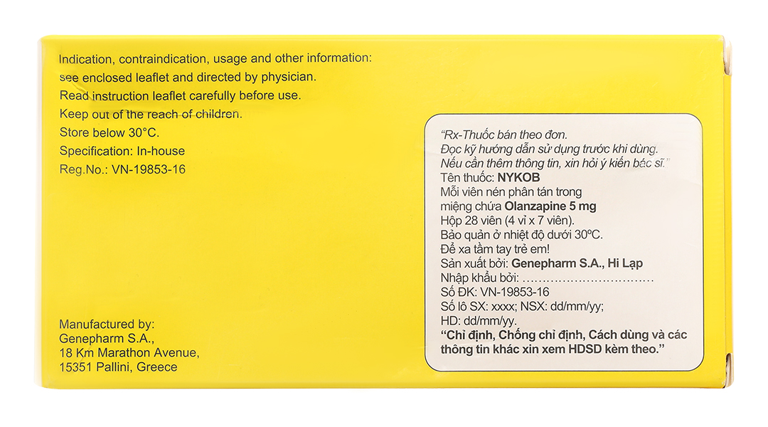 Nykob 5mg trị tâm thần phân liệt, rối loạn lưỡng cực (4 vỉ x 7 viên)
