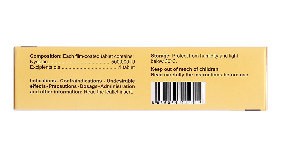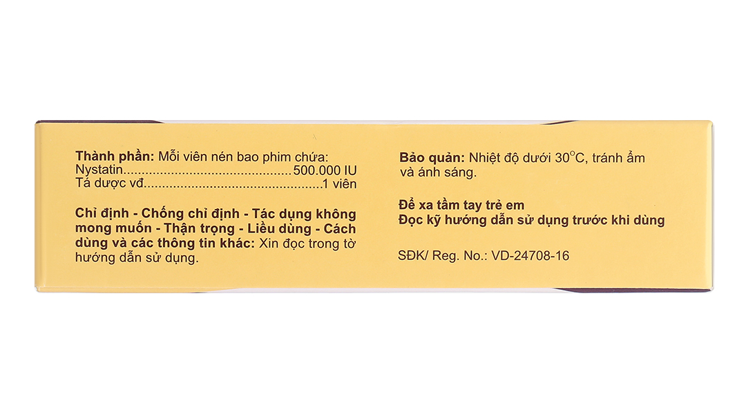 – Thận trọng khi sử dụngNếu có phản ứng quá mẫn xảy ra, nên ngừng thuốc ngay và có biện pháp xử lí thích hợp. Không chỉ định dùng cho nhiễm nấm toàn thân vì thuốc không được hấp thu qua đường tiêu hoá. – Phụ nữ có thai và cho con búThời kỳ mang thai Mặc dù Nystatin kém hấp thu qua đường tiêu hóa nhưng chưa rõ có ảnh hưởng đến thai khi dùng cho phụ nữ có thai không, vì vậy chỉ nên dùng cho phụ nữ có thai khi lợi ích lớn hơn nguy cơ. Thời kỳ cho con bú Chưa rõ Nystatin có bài tiết qua sữa mẹ không, vì vậy nên thận trọng khi dùng thuốc ở phụ nữ đang cho con bú. – Khả năng lái xe và vận hành máy móc:Chưa có thông tin về ảnh hưởng của thuốc đến khả năng lái xe và vận hành máy móc. – Tương tác thuốcBị mất tác dụng kháng Candida Albicans nếu dùng đồng thời Riboflavin Phosphat. Khi dùng Nystatin theo đường uống, tránh dùng các thuốc làm thay đổi nhu động ruột, các thuốc bao niêm mạc tiêu hoá vì làm cản trở tác dụng của Nystatin. Để tránh tương tác giữa các thuốc, thông báo cho bác sĩ hoặc dược sĩ về những thuốc đang sử dụng. |