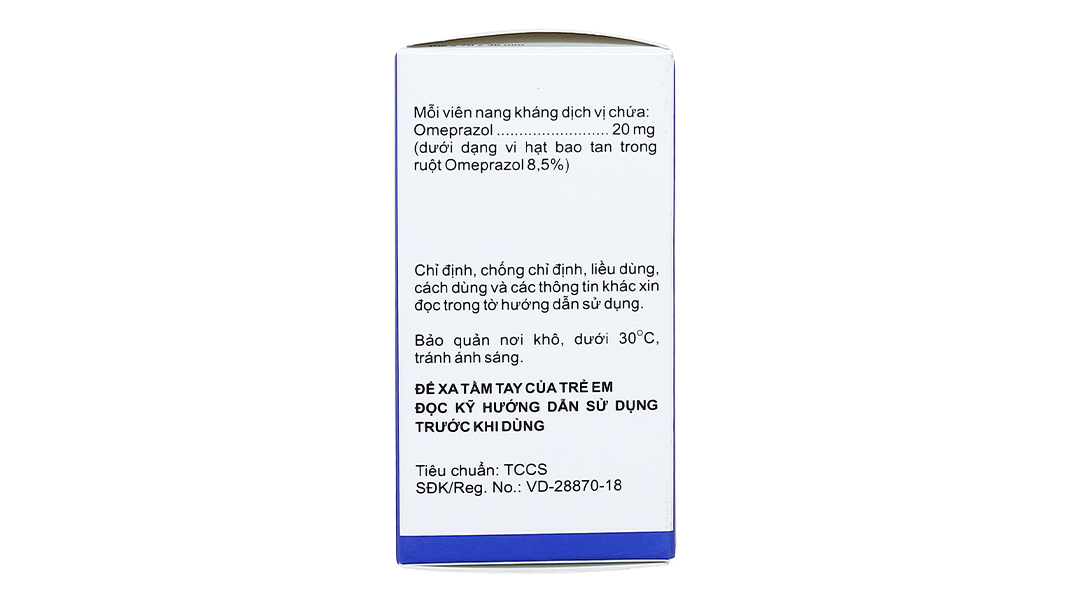Omeprazol 20mg. (dưới dạng vi hạt bao tan trong ruột omeprazol 8.5%)