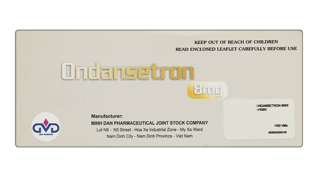 – Thận trọng khi sử dụngPhản ứng quá mẫn đã được báo cáo ở những bệnh nhân có tiền sử mẫn cảm với thuốc đối kháng thụ thể 5-HT3 chọn lọc khác. Theo dõi tình trạng hô hấp, điều trị triệu chứng nên được thực hiện trước khi phản ứng quá mẫn xảy ra. Ondansetron kéo dài thời gian QT phụ thuộc liều, xoắn đỉnh đã được báo cáo ở những bệnh nhân sử dụng ondansetron. Tránh dùng ondansetron cho những bệnh nhân kéo dài QT bẩm sinh. Ondansetron nên thận trọng dùng cho những bệnh nhân QT dài bẩm sinh hoặc các yếu tố nguy cơ kéo dài QT khác (rối loạn điện giải, suy tim sung huyết, loạn nhịp tim hoặc sử dụng những thuốc khác dẫn đến kéo dài QT hoặc bất thường điện). Hạ kali và magie máu nên được điều chỉnh trước khi sử dụng ondansetron. Đã có báo cáo về hội chứng serotonin (thay đổi trạng thái tâm thần, mất tính tự chủ, bất thường về thần kinh cơ) sau khi sử dụng đồng thời ondansetron với các thuốc serotonergic khác (bao gồm thuốc ức chế tái hấp thu serotonin chọn lọc (SSRI) và noradrenalin (SNRIs). Bệnh nhân cần được theo dõi triệu chứng serotonin, đặc biệt khi dùng ondansetron cùng thuốc serotonergic khác. Ondansetron làm tăng thời gian vận chuyển trong ruột. Do đó bệnh nhân có dấu hiệu tắc nghẽn đường ruột cấp nên được theo dõi cẩn thận. Ở bệnh nhân phẫu thuật cắt amidan, phòng ngừa buồn nôn và nôn bằng ondansetron có thể che dấu triệu chứng chảy máu. Do đó ở những bệnh nhân này nên được theo dõi cẩn thận khi dùng ondansetron. – Trẻ em: Trẻ em dùng ondansetron cùng với các thuốc hóa trị liệu độc với gan nên được giám sát chức năng gan chặt chẽ. – Thai kỳ và cho con búSử dụng thuốc cho phụ nữ có thai: Sự an toàn của thuốc trong thời kỳ mang thai chưa được thiết lập. Các nghiên cứu trên động vật không cho thấy tác động có hại trên sự phát triển của thai và sau sinh. Tuy nhiên, nghiên cứu trên động vật không phải lúc nào cũng tiên đoán được đáp ứng đối với con người, do đó không nên sử dụng thuốc cho phụ nữ có thai. Sử dụng thuốc cho phụ nữ cho con bú: Nghiên cứu trên động vật cho thấy ondansetron có bài tiết qua sữa của động vật cho con bú. Do đó không nên sử dụng thuốc cho phụ nữ cho con bú. – Khả năng lái xe và vận hành máy mócOndansetron không hoặc ảnh hưởng không đáng kể đến khả năng lái xe và vận hành máy móc. – Tương tác thuốcApomorphin: Đã có báo cáo hạ huyết áp sâu và mất ý thức khi dùng ondansetron với apomorphin hydroclorid. Do đó dùng phối hợp ondansetron và apomorphin là chống chỉ định. Không có bằng chứng cho thấy ondansetron gây ra ức chế chuyển hóa các sản phẩm thuốc khác. Các nghiên cứu cụ thể chỉ ra rằng không có tương tác khi ondansetron được dùng cùng với rượu, temazepam, furosemid, alfentanil, tramadol, morphin, lidocain, thiopental hoặc propofol. Ondansetron được chuyển hóa bởi nhiều enzym gan cytochrome P-450: CYP3A4, CYP2D6 và CYP1A2. Do sự đa dạng của các enzym trao đổi chất có khả năng chuyển hóa ondansetron, ức chế enzym hoặc giảm hoạt động của một enzym (ví dụ, thiếu hụt di truyền CYP2D6) thường được bù đắp bởi các enzym khác. Đã có các báo cáo về hội chứng serotonin (bao gồm thay đổi trạng thái tinh thần, mất tính tự chủ, bất thường thần kinh cơ) sau khi sử dụng đồng thời ondansetron và các thuốc serotonergic khác (bao gồm SSRI và SNRI). Phenytoin, carbamazepin và rifampicin: Ở những bệnh nhân được điều trị bằng các chất cảm ứng CYP3A4, độ thanh thải của ondansetron được tăng lên và nồng độ trong máu ondansetron giảm. Tramadol: Các nghiên cứu nhỏ chỉ ra rằng ondansetron có thể làm giảm tác dụng giảm đau của tramadol. Sử dụng ondansetron với các thuốc kéo dài thời gian QT có thể dẫn đến kéo dài thêm QT. Sử dụng đồng thời ondansetron với các thuốc có độc tính với tim (ví dụ như doxorubicin, daunorubicin hoặc trastuzumab), kháng sinh (như erythromycin), thuốc chống nấm (như ketoconazol), thuốc chống loạn nhịp (như amiodaron) và thuốc chẹn bêta (như atenolol hoặc timolol) có thể làm tăng nguy cơ loạn nhịp tim. |