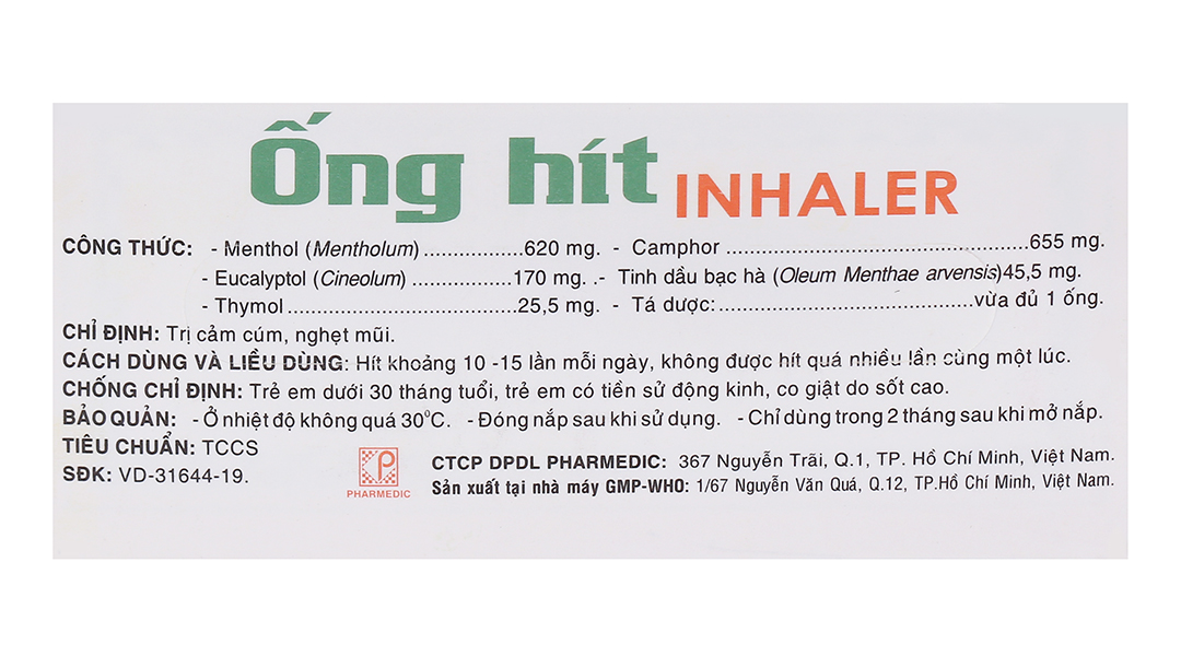 Hoạt chấtThymol, Eucalyptol, Camphor, Menthol, Tinh dầu bạc hà (Oleum Menthae arvensis)
