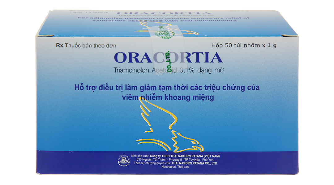 – Triamcinolon acetonid là glucocorticoid tổng hợp có fluor. Triamcinolon acetonid dùng tại chỗ có tác dụng ngăn chặn hoặc làm giảm tiến triển của các triệu chứng viêm như rát, nóng đỏ, phồng rộp tại chỗ.