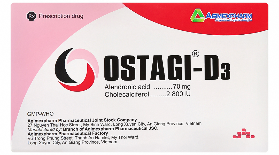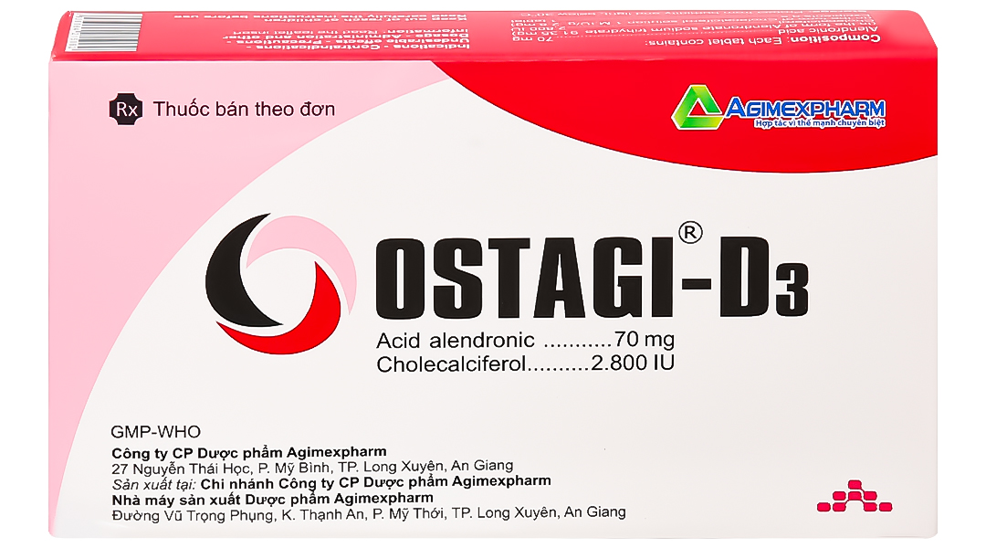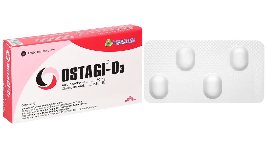 – Thận trọng khi sử dụngLiên quan đến alendronat: Tác dụng phụ lên đường tiêu hóa trên: Alendronat có thể gây kích ứng tại chỗ ở niêm mạc tiêu hóa trên. Cần thận trọng khi dùng alendronat cho bệnh 1. nhân đang có các bệnh ở đường hô hấp trên, chẳng hạn như chứng khó nuốt, bệnh thực quản, viêm dạ dày, viêm tá tràng, loét, hoặc có tiền sử gần đây (trong vòng năm trước đó) các bệnh đường tiêu hóa quan trọng như loét dạ dày tá tràng, hoặc chảy máu tiêu hóa tiến triển, hoặc phẫu thuật đường tiêu hóa trên không phải là thủ thuật tạo hình môn vị. Đã có báo cáo về những phản ứng có hại ở thực quản (đôi khi nghiêm trọng và phải nhập viện), như viêm thực quản, loét thực quản và trọt thực quản, hiếm khi dẫn tới hẹp hoặc thủng thực quản ở người bệnh điều trị bằng alendronat. Một số trường hợp nặng và cần nằm viện. Vì thế, cần cảnh giác với bất kỳ dấu hiệu hoặc triệu chứng nào báo hiệu về phản ứng thực quản và người bệnh phải được hướng dẫn để ngừng uống OSTAGI-D3 và báo cho bác sĩ ngay nếu thấy khó nuốt, đau khi nuốt, đau sau xương ức, ợ nóng mới xuất hiện hoặc nặng hơn. Nguy cơ mắc tai biến nặng về thực quản gặp nhiều hơn ở những người bệnh nằm ngay sau khi uống thuốc hoặc không uống thuốc với cốc nước đầy và/hoặc vẫn tiếp tục dùng OSTAGI-D3 sau khi có những triệu chứng nghi là kích ứng thực quản. Vì vậy, cung cấp đầy đủ thông tin cho người bệnh để họ hiểu rõ các chỉ dẫn về liều lượng, cách dùng là rất quan trọng. Mặc dù không thấy tăng nguy cơ trong những thử nghiệm lâm sàng mở rộng, đã có một số báo cáo hiếm gặp (sau khi đưa thuốc ra thị trường) về loét dạ dày và tá tràng, trong đó một số trường hợp nặng và có biến chứng. Hoại tử xương hàm: Hoại tử xương hàm thường liên quan đến nhổ răng và/hoặc nhiễm khuẩn tại chỗ (kể cả viêm xương tủy) đã được báo cáo ở các bệnh nhân ung thư đang được điều trị với phác đồ gồm có bisphosphonat tiêm tĩnh mạch. Nhiều người trong số những bệnh nhân này cũng đang được điều trị theo hóa trị liệu và corticosteroid. Hoại tử xương hàm cũng đã được báo cáo ở bệnh nhân loãng xương đang uống bisphosphonat. Các yếu tố nguy cơ sau đây cần được xem xét khi đánh giá nguy cơ của từng cá nhân đối với xảy ra hoại tử xương hàm: Hiệu lực của bisphosphonat (cao nhất đối với acid zoledronic), đường dùng và liều tích lũy. Ung thư, hóa trị, xạ trị, corticosteroid, chất ức chế tạo mạch, hút thuốc. Lịch sử bệnh về răng, vệ sinh răng miệng kém, bệnh nha chu, thủ thuật răng xâm lấn và hàm răng giả phù hợp kém. Khám răng với nha khoa dự phòng thích hợp cần được xem xét trước khi điều trị với thuốc uống bisphosphonat ở những bệnh nhân có tình trạng răng xấu. Trong khi điều trị, nếu có thể, những bệnh nhân này nên tránh thủ thuật nha khoa xâm lấn. Đối với bệnh nhân bị Xem hoại tử xương hàm trong khi điều trị với bisphosphonat, phẫu thuật nha khoa có thể làm trầm trọng thêm tình trạng này. Đối với bệnh nhân cần phải thực hiện thủ thuật nha khoa, không có dữ liệu cho thấy việc ngưng dùng bisphosphonat làm giảm nguy cơ hoại tử xương hàm. Trong điều trị với bisphosphonat, tất cả bệnh nhân cần được khuyến khích duy trì vệ sinh răng miệng tốt, khám m răng định kỳ, và báo cáo bất kỳ triệu chứng nào về miệng như di động của răng, đau hoặc sưng tấy. Hoại tử xương ống tai ngoài: Hoại tử xương ống tai ngoài do sử dụng các bisphosphonat đã được báo cáo, chủ yếu liên quan đến điều trị dài phi hạn. Các yếu tố nguy cơ có thể xảy ra cho hoại tử xương ống tai ngoài bao gồm sử dụng steroid và hoá trị và/hoặc các yếu tố nguy cơ tại chỗ như nhiễm trùng hoặc tổn thương. Cần xem xét khả năng hoại tử xương c ống tai ngoài ở những bệnh nhân dùng bisphosphonat có triệu chứng ở tai như đau hoặc chảy mủ, hoặc nhiễm trùng tai mạn tính. Đau cơ xương: Đã có báo cáo về các trường hợp đau xương, khớp, và/hoặc cơ ở những bệnh nhân dùng bisphosphonat. Kinh nghiệm sau khi thuốc ra thị trường cho thấy các triệu chứng này hiếm khi nặng và/hoặc cản trở hoạt động Tiểu bình thường. Thời gian khởi phát triệu chứng thay đổi từ một ngày đến vài tháng sau khi bắt đầu điều trị. Hầu hết bệnh nhân đều giảm triệu chứng sau khi ngừng điều trị. Một nhóm nhỏ bệnh nhân đã tái phát các triệu tin chứng khi dùng trở lại cùng một loại thuốc hoặc một bisphosphonat khác. Gãy xương đùi không điển hình: Gãy dưới mấu chuyển và thân xương đùi không điển hình đã được báo cáo với liệu pháp bisphosphonat, chủ yếu ở bệnh nhân được điều trị lâu dài vì loãng xương. Các vết gãy xương ngang hoặc chéo ngắn có thể xảy ra bất cứ nơi nào dọc theo xương đùi từ ngay dưới mấu chuyển nhỏ đến ngay phía trên lồi cầu. Gãy xương xảy ra sau khi 