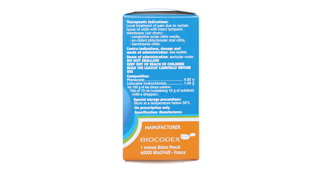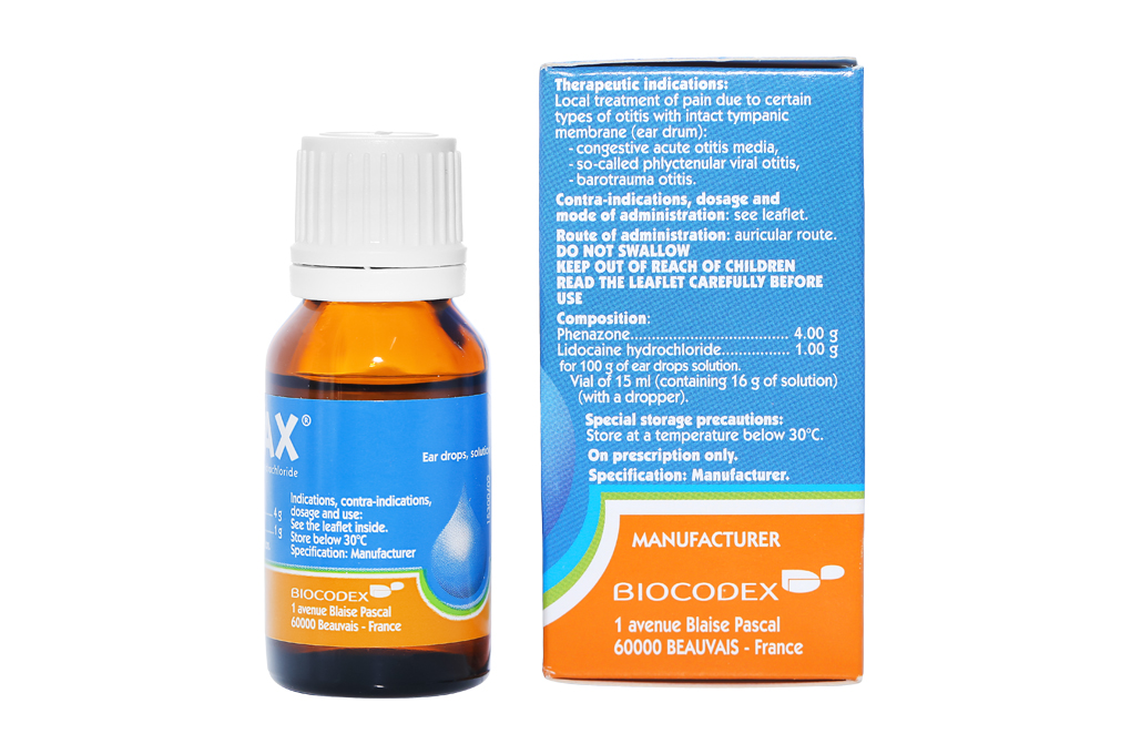 Phân loại: giảm đau tại chỗ/kháng viêm dùng cho tai.