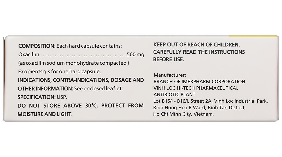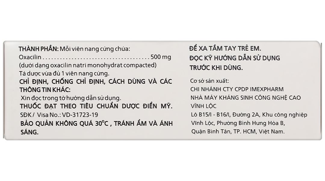 Oxacillin IMP 500mg trị nhiễm khuẩn đường hô hấp, nhiễm khuẩn ở xương (3 vỉ x 10 viên)