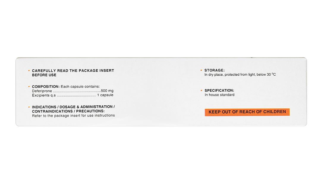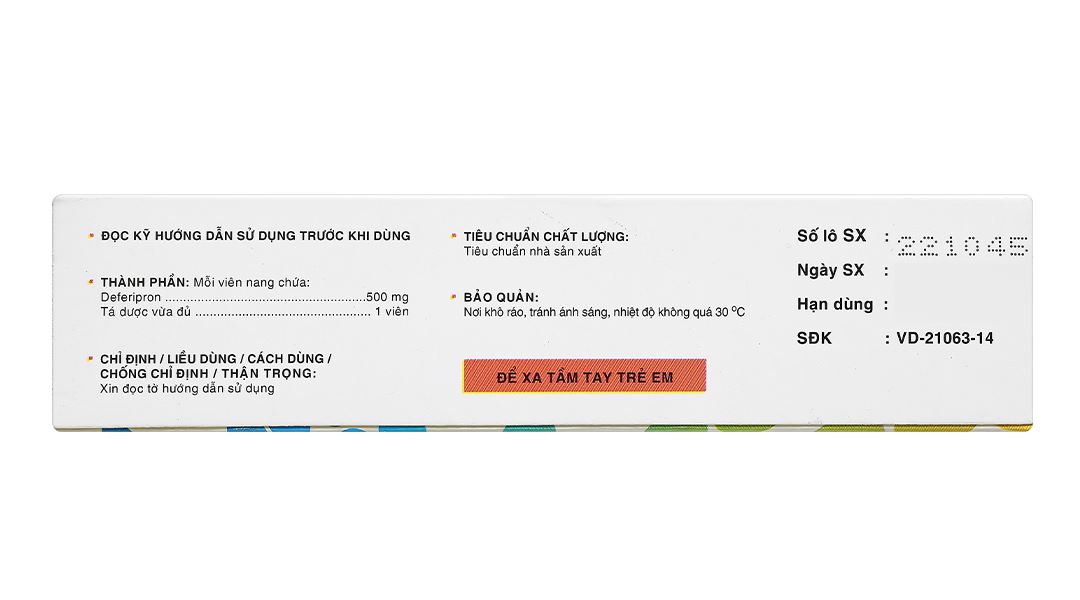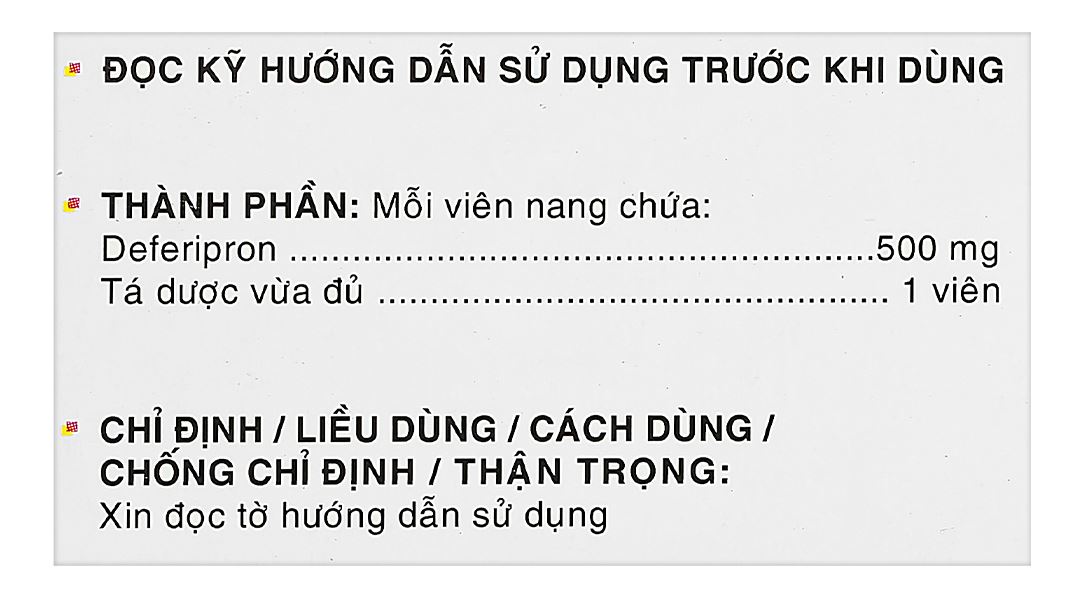 Công dụngĐiều trị tình trạng dư thừa sắt trong cơ thể, chủ yếu ở bệnh nhân thalassemia