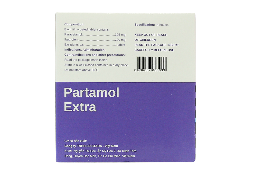 Hoạt chất: Paracetamol 325mg, Ibuprofen 200mg.