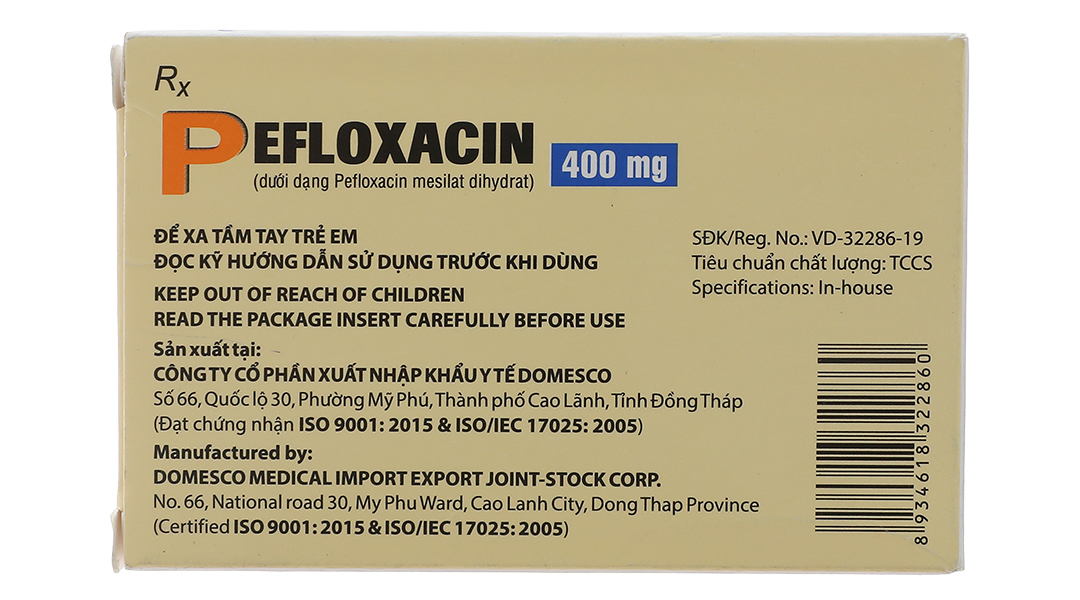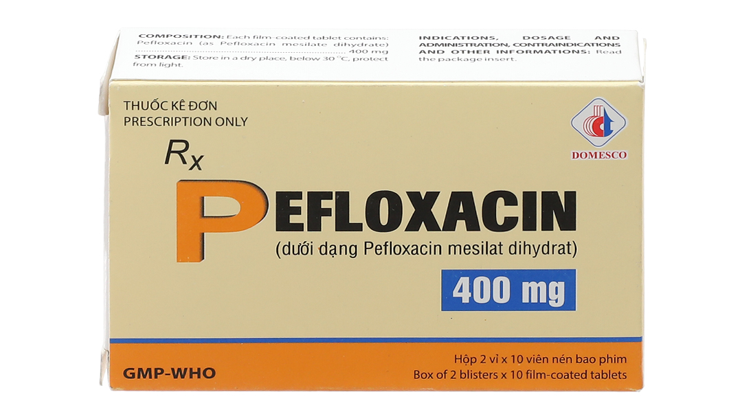 Pefloxacin Domesco 400mg trị nhiễm khuẩn (2 vỉ x 10 viên)