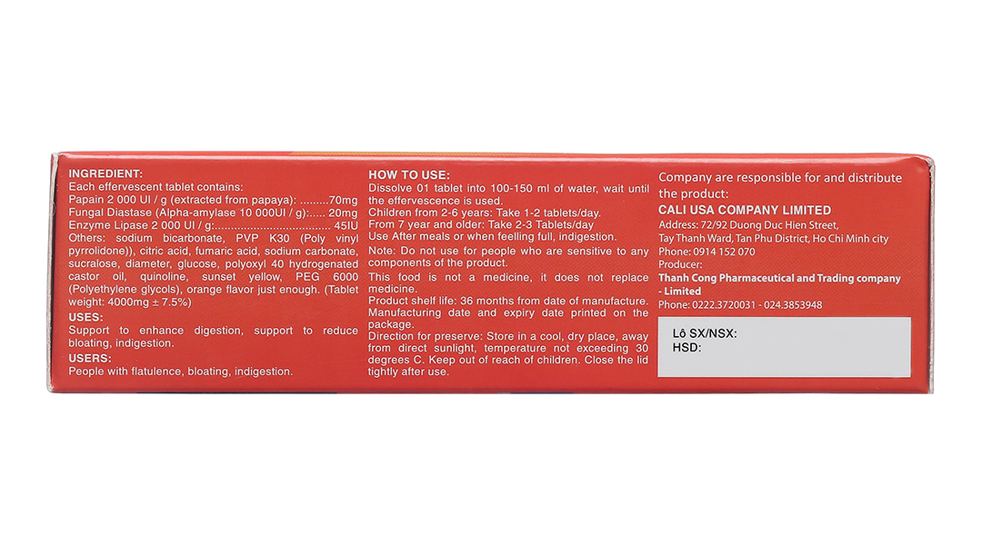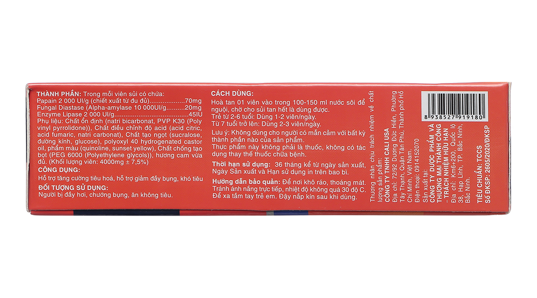 Công dụngHỗ trợ tăng cường tiêu hóa, hỗ trợ giảm đầy bụng khó tiêu