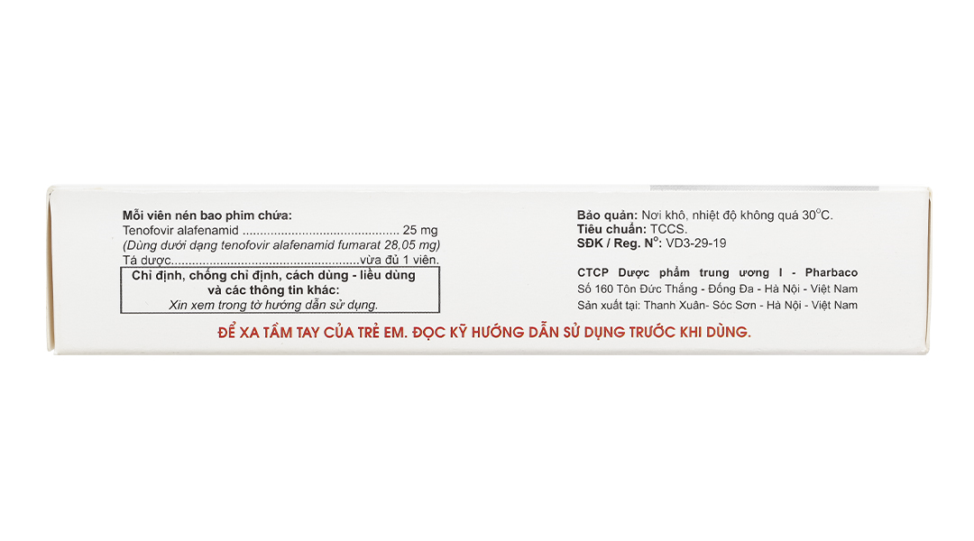 Thành phần dược chất: Tenofovir alafenamid (dùng dưới dạng Tenofovir alafenamid fumarat 28,05mg) 25 mg.