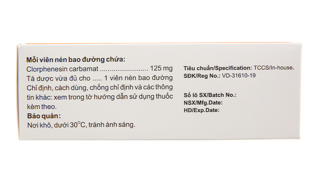 Thành phần hoạt chất: Clorphenesin carbamat 125mg.
