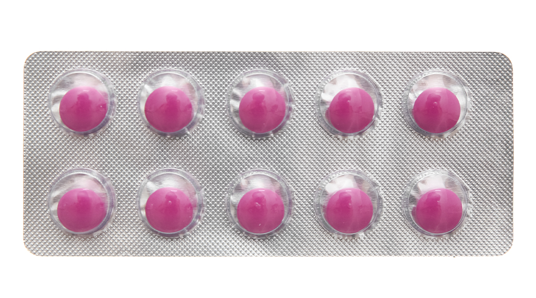 Viên nén bao đường màu hồng đậm, hai mặt khum, cạnh và thành viên lành lặn.