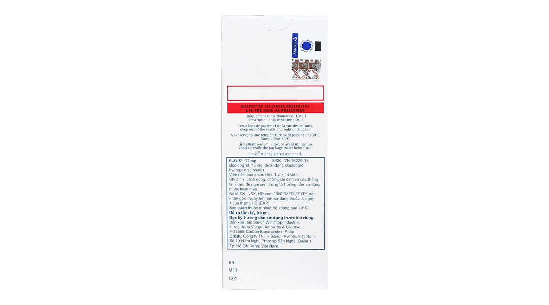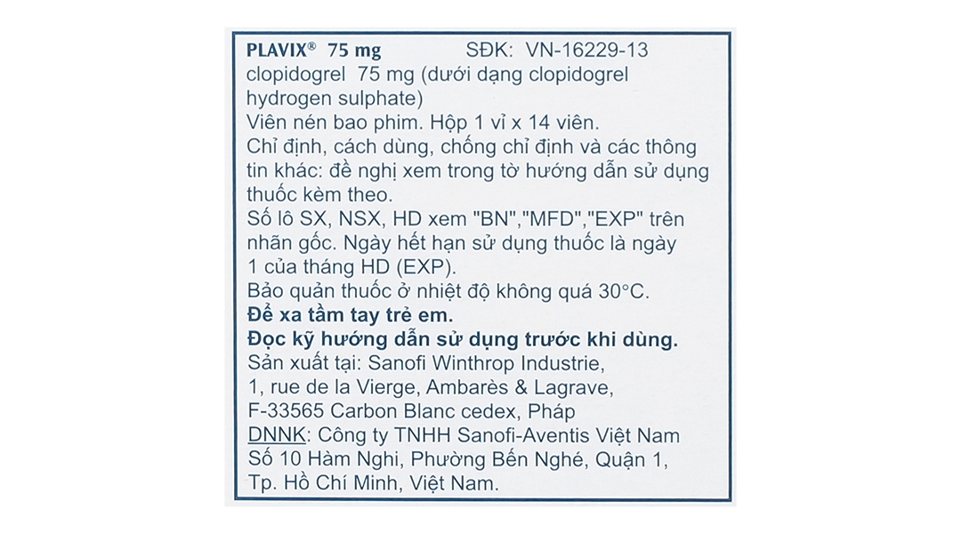 Mỗi viên nén Plavix chứa 75mg clopidogrel (dạng hydrogen sulfate).