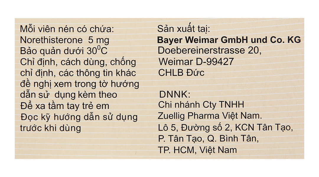 - Hoạt chất: 1 viên Primolut-N có 5mg norethisteron.