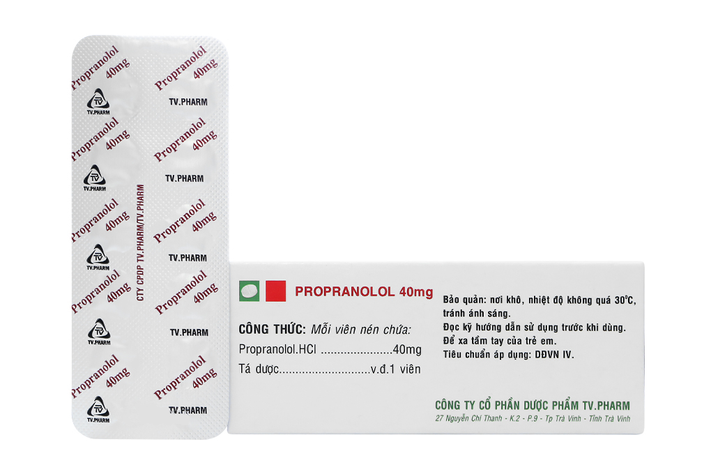 Propranolol TV.Pharm 40mg trị tăng huyết áp, đau thắt ngực (10 vỉ x 10 viên)