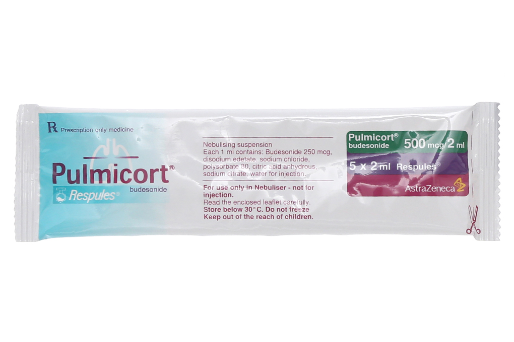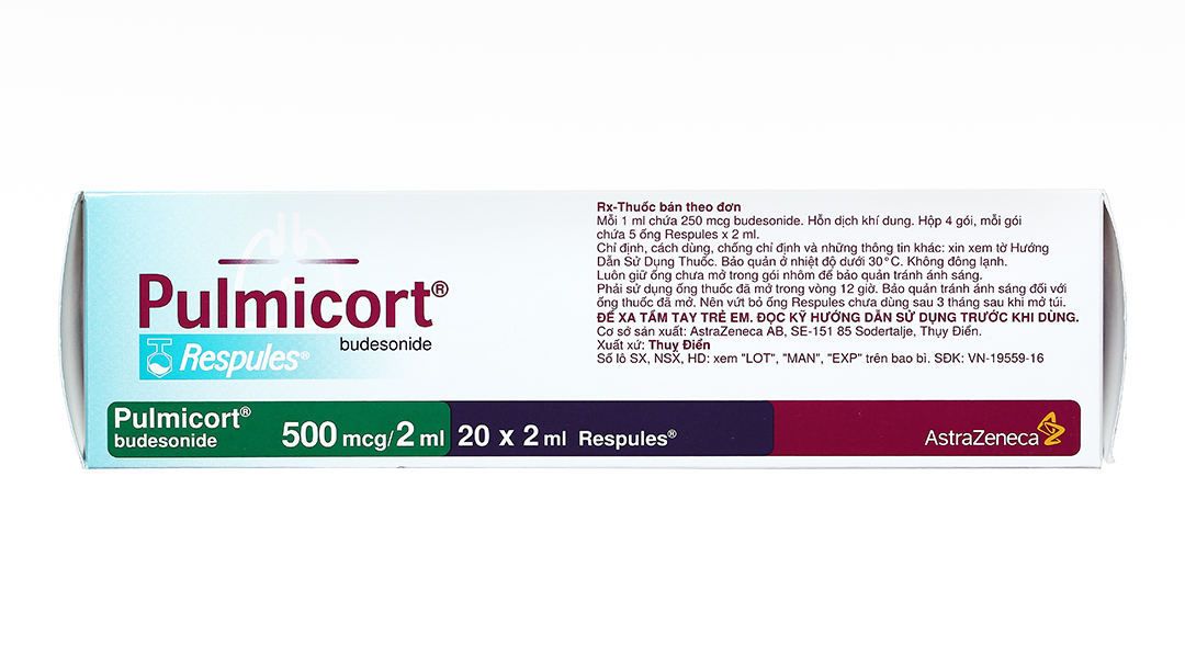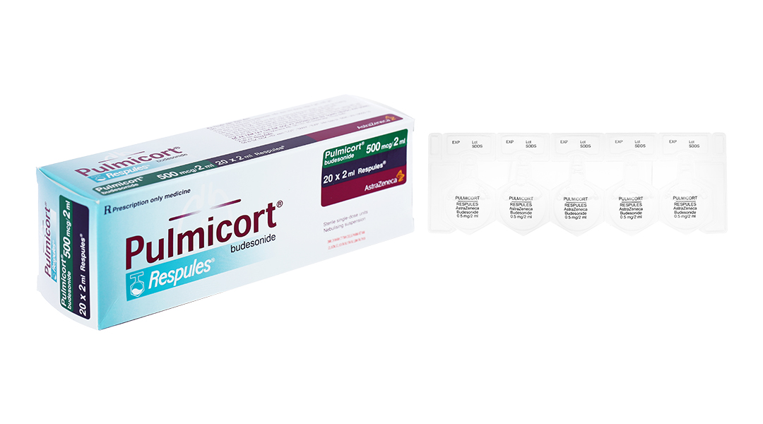 - Hoạt chất: Mỗi 1ml chứa 250 mcg budesonide. Hỗn dịch khí dung. Hộp 4 gói, mỗi gói chứa 5 ống Respules x 2ml.