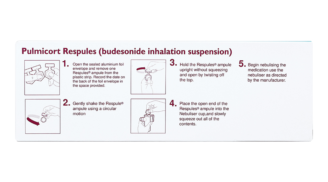 – Bệnh nhân nên được hướng dẫn sử dụng đúng cách loại dụng cụ khí dung thích hợp cho bệnh lý của họ. Mỗi đơn vị đóng gói PULMICORT đều có Tờ Hướng Dẫn Sử Dụng đầy đủ.