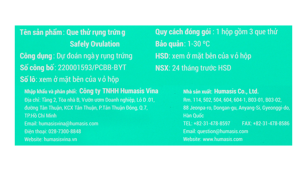 - Que thử rụng trứng Humasis Safely Ovulation là thiết bị tự kiểm tra.