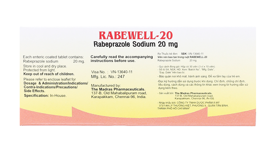 Rabewell-20 trị trào ngược dạ dày, thực quản (3 vỉ x 10 viên)