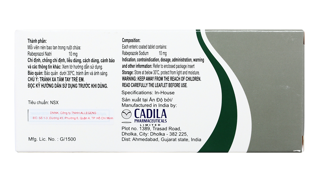 Rabicad 10 trị loét dạ dày, tá tràng (1 vỉ x 10 viên)