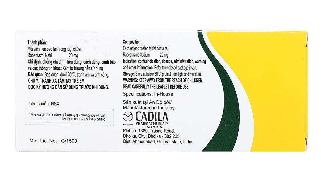 - Loét hay bệnh lý trào ngược dạ dày-thực quản (GORD): Liều uống khuyến cáo cho điều kiện này là 20mg, uống 1 lần mỗi ngày trong vòng 4 đến 8 tuần. Việc kiểm soát lâu dài bệnh lý trào ngược dạ dày-thực quản (quản lý GORD): Đối với việc quản lý lâu dài, việc duy trì liều rabeprazol sodium 20mg hay 10mg, 1 lần mỗi ngày có thể được sử dụng phụ thuộc vào đáp ứng của bệnh nhân.