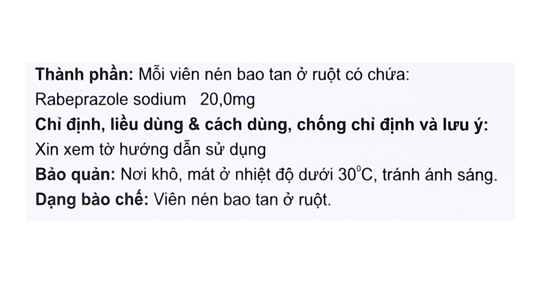 Rabofar 20 trị trào ngược dạ dày, thực quản (3 vỉ x 10 viên)