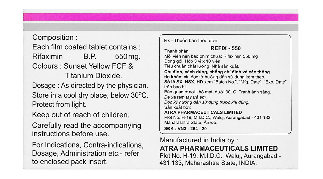 Thành phần hoạt chất: Rifaximin 550 mg.
