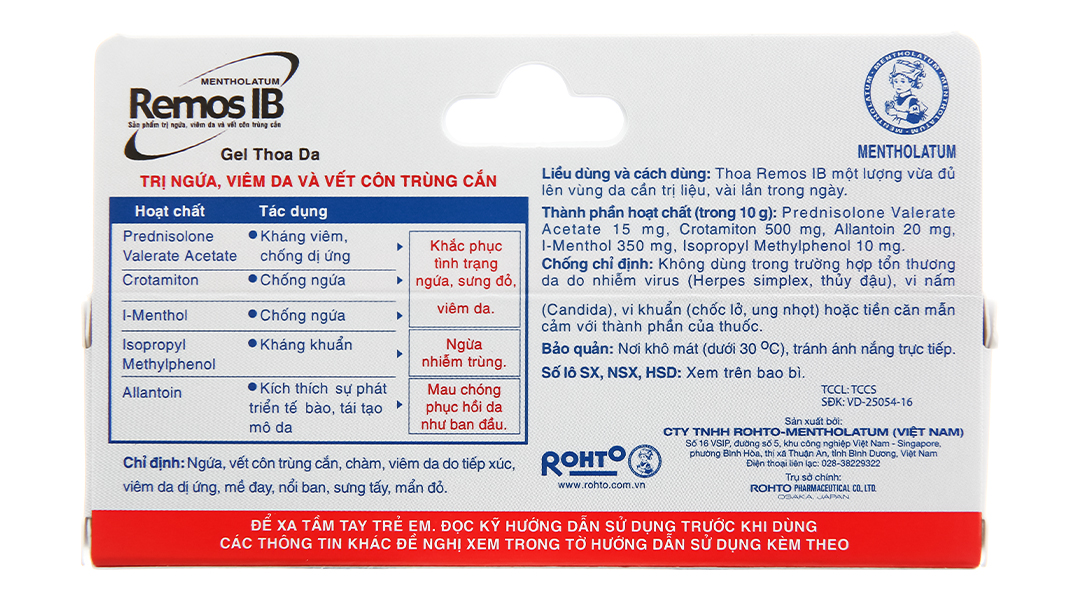 - Hoạt chất: Prednisolone Valerate Acetate 15mg, Crotamiton 500mg, Allantoin 20mg, l-Menthol 350mg, Isopropyl Methylphenol 10mg.