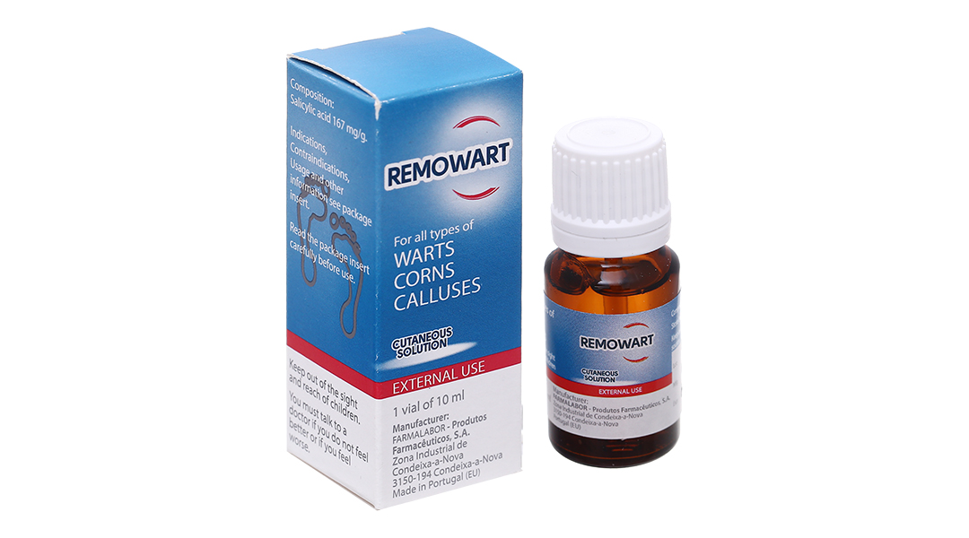 - Remowart là dung dịch ngoài da có chứa hoạt chất acid salicylic, và có tá dược là acid lactic và flexible methylated collodion. Sản phẩm dễ sử dụng và có khả năng tróc lớp sừng mạnh.