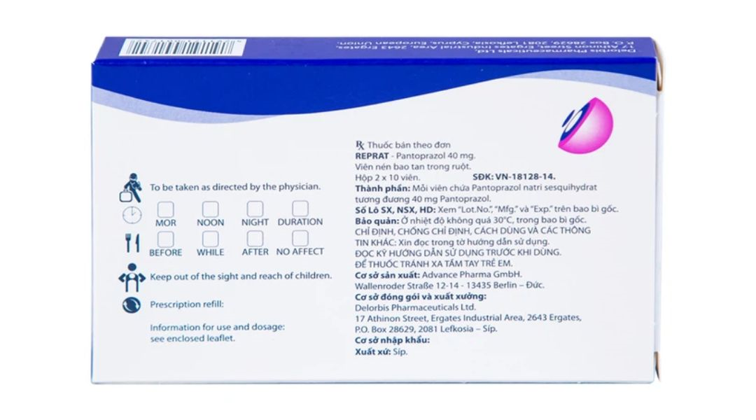 Reprat 40mg trị trào ngược dạ dày – thực quản (2 vỉ x 10 viên)