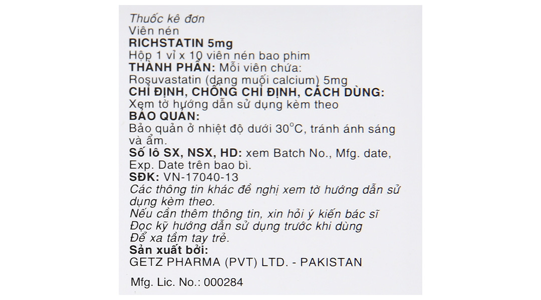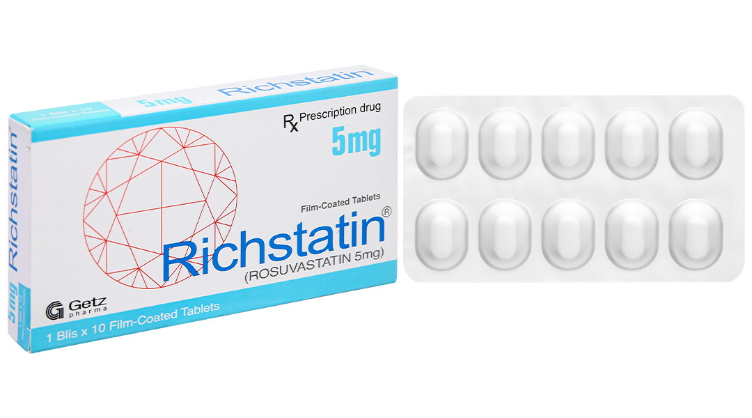 Richstatin 5mg dùng làm giảm nồng độ cholesterol toàn phần (1 vỉ x 10 viên)