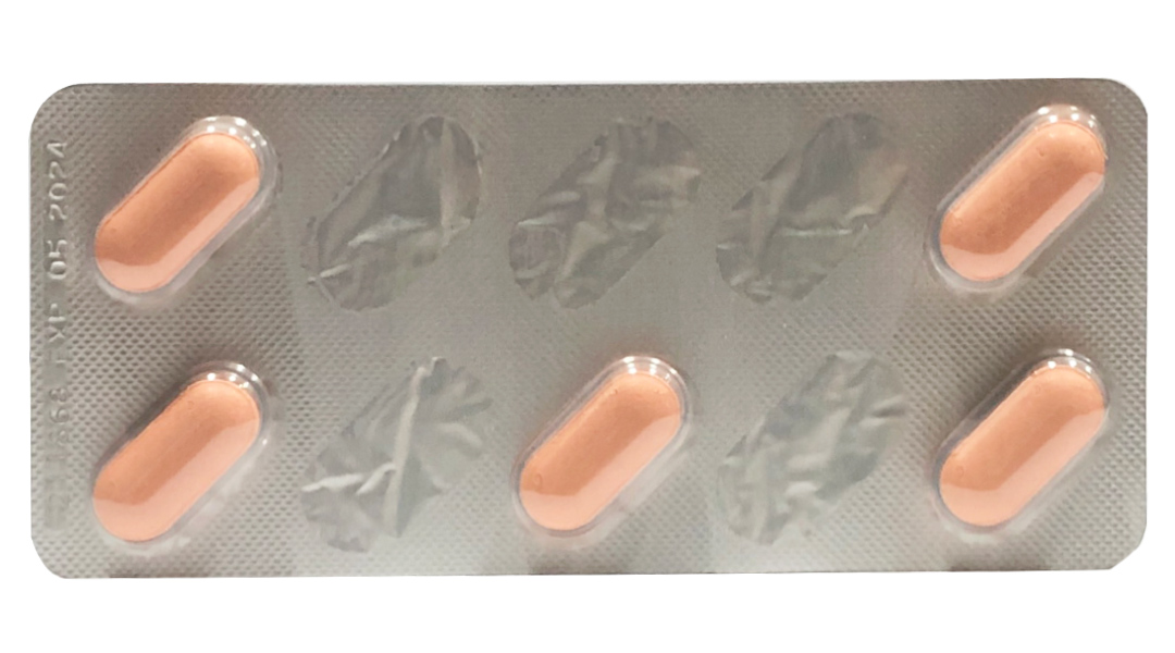 Viên nén bao phim màu cam nhạt hình thuôn dài, hai mặt lồi.