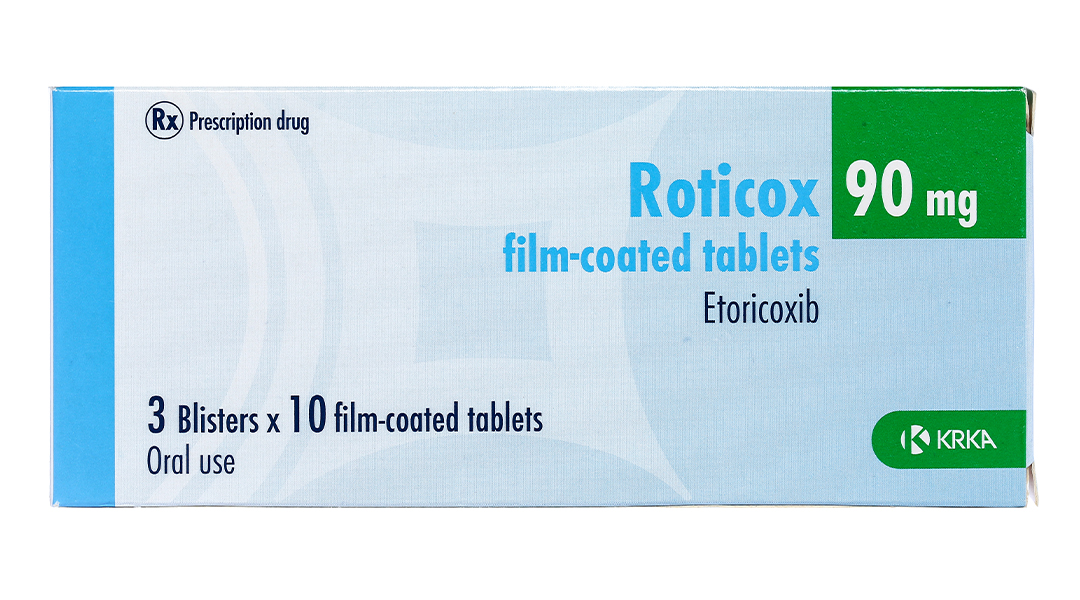 Roticox 90mg film – coated tablets: Mỗi viên nén bao phim chứa 90mg Etoricoxib.