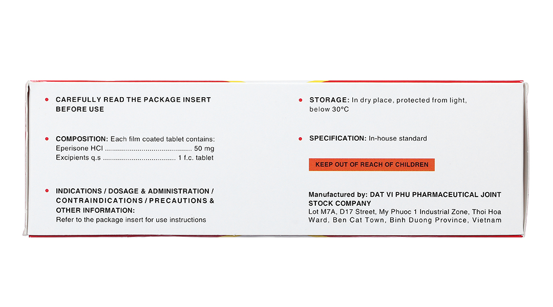 Thận trọng khi dùng thuốc cho những bệnh nhân có tiền sử mẫn cảm với eperison hoặc bất kỳ thành phần nào của thuốc.