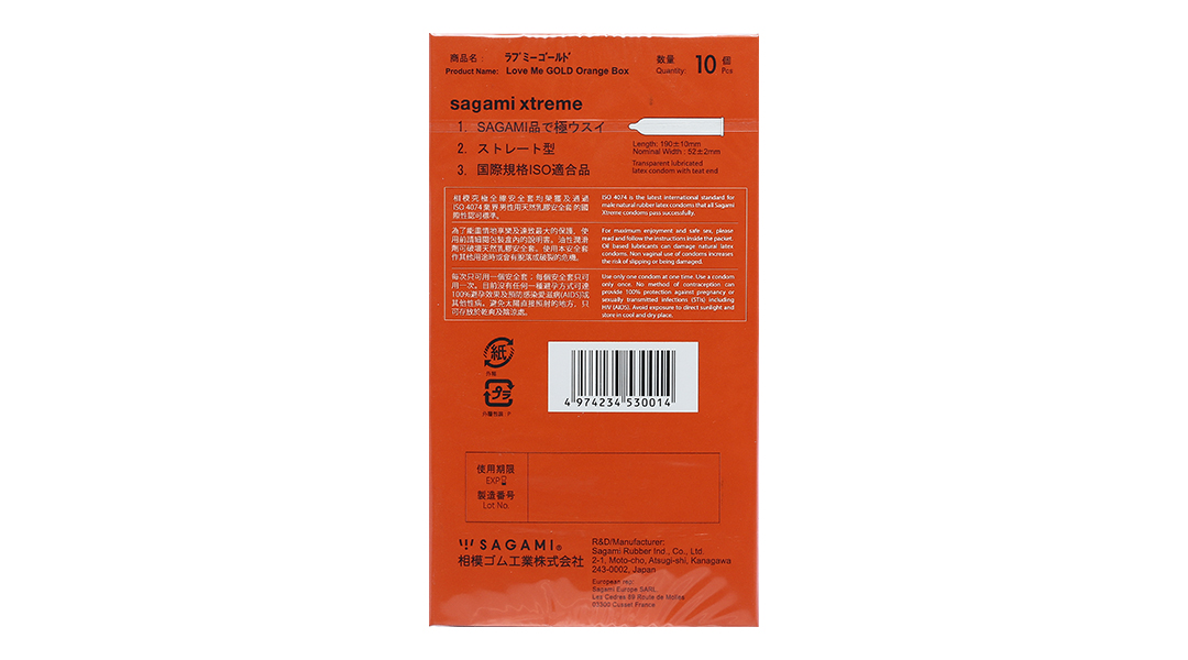 Sagami Xtreme Love Me Gold là bao cao su siêu mỏng, được ưa chuộng hàng đầu trong dòng bao cao su mỏng trơn ở Nhật Bản và châu Á.