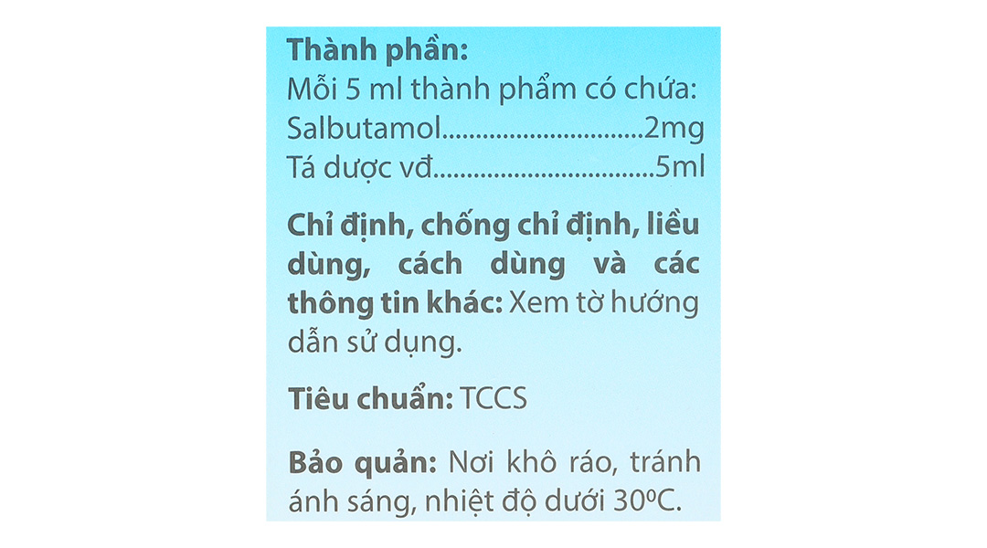 - Thành phần hoạt chất: Salbutamol (dưới dạng salbutamol sulfat) 2mg.