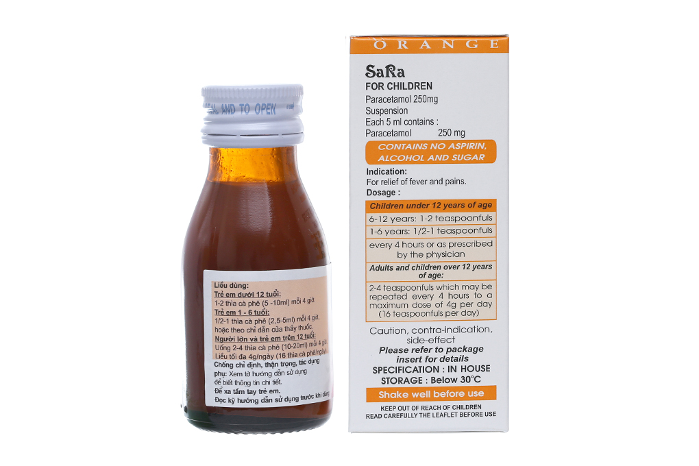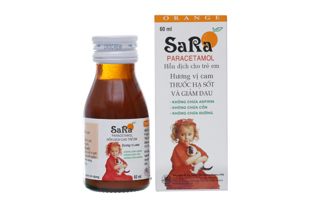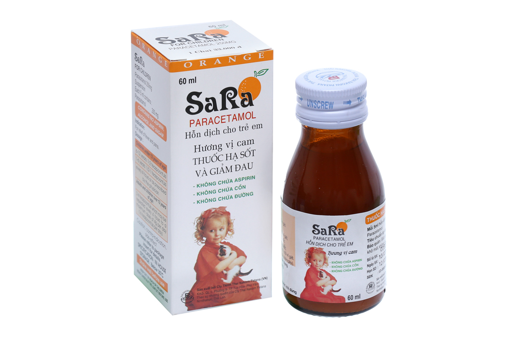 - Hoạt chất: 5ml hỗn dịch Sara for children chứa 250mg Paracetamol.