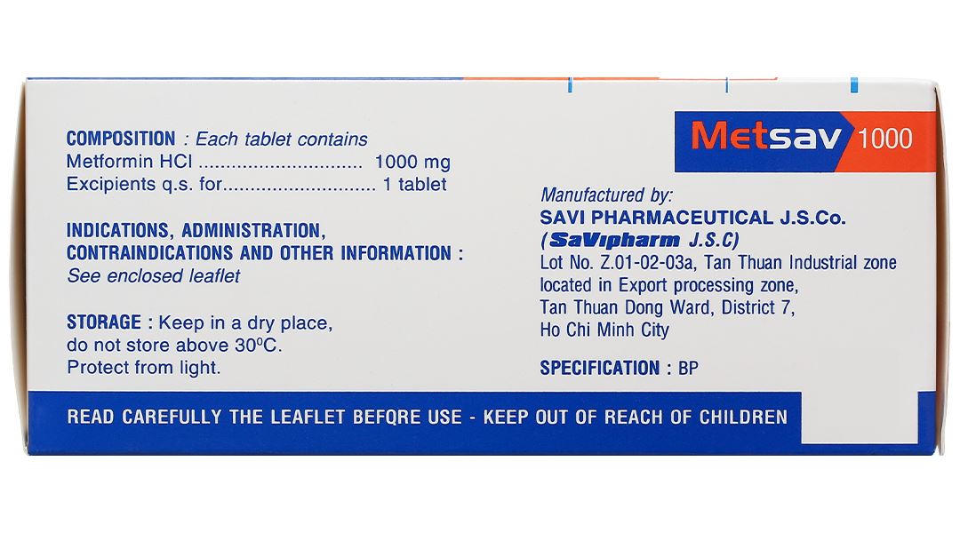 (*) Có thể dùng Metsav 500 (metformin hydroclorid 500 mg) hoặc chế phẩm khác có hàm lượng phù hợp.