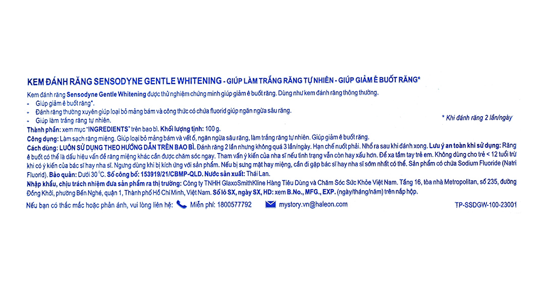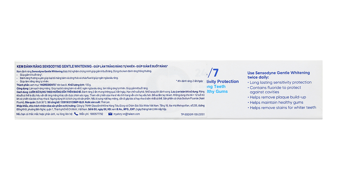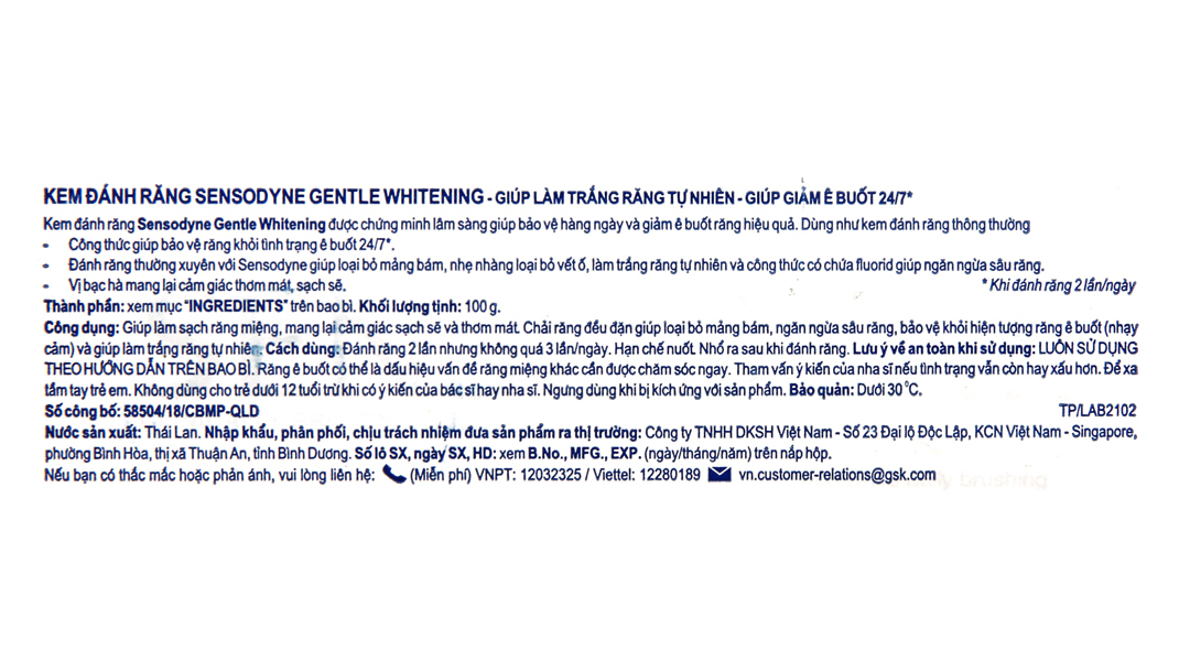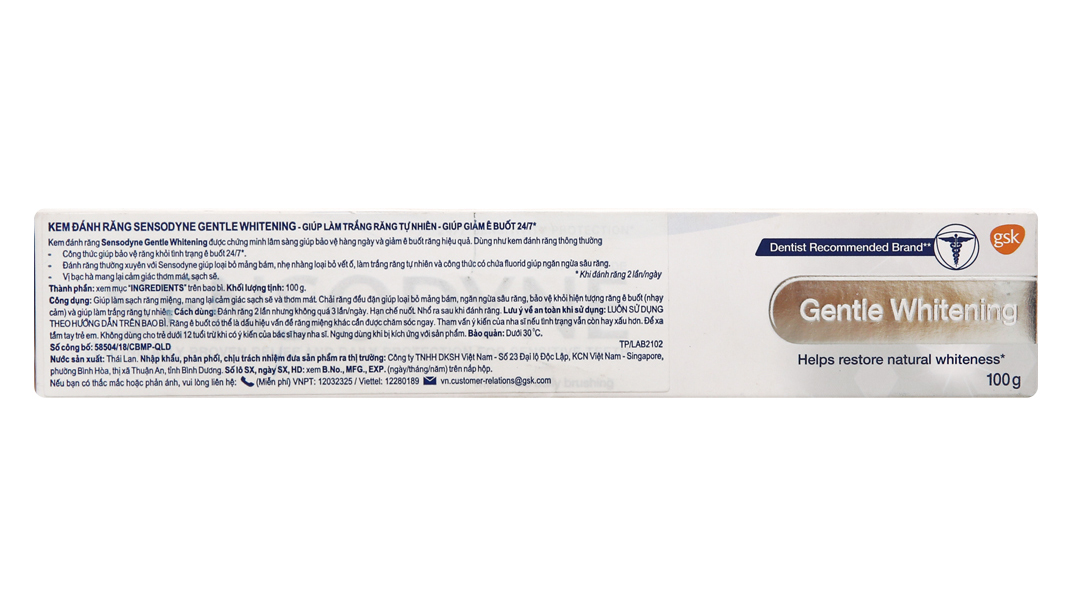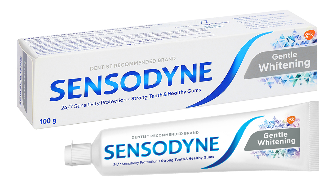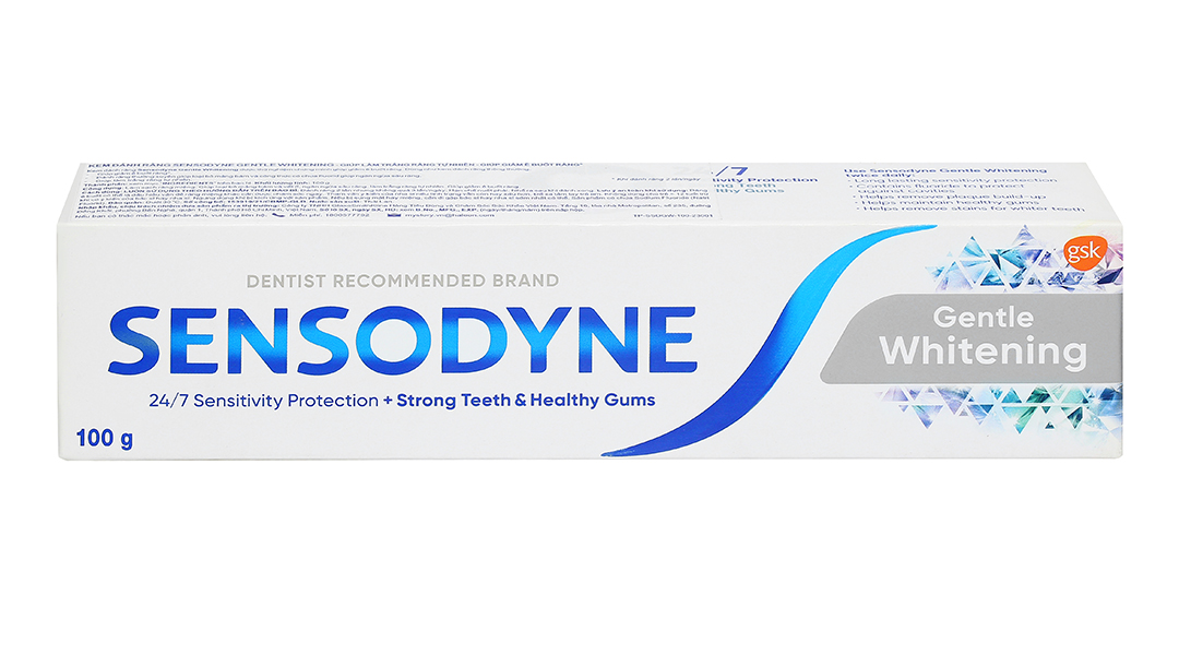 - Sensodyne Gentle Whitening được chứng minh lâm sàng giảm ê buốt răng và bảo vệ hằng ngày cho răng nhạy cảm.